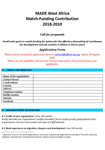 Small-scale grant in match funding for actions for the effective channelling of remittances for development and job creation in Ghana or Sierra Leone.
