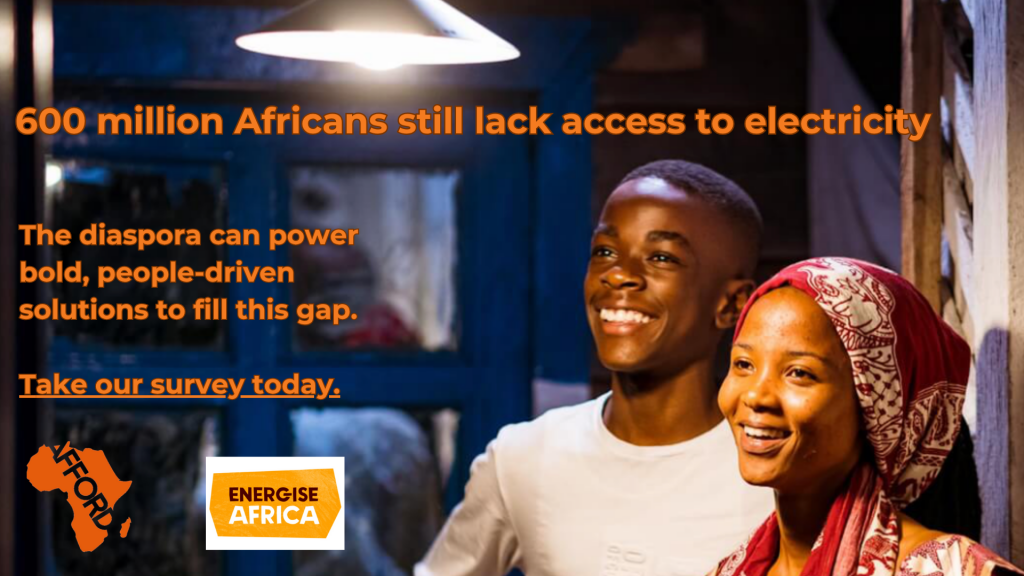 AFFORD’s new research initiative in partnership with Crowd Power and Energise Africa explores how African diaspora communities can invest in energy projects in Africa – where 600 million people still lack access to electricity – for a financial return while also making a huge impact in communities on the continent.